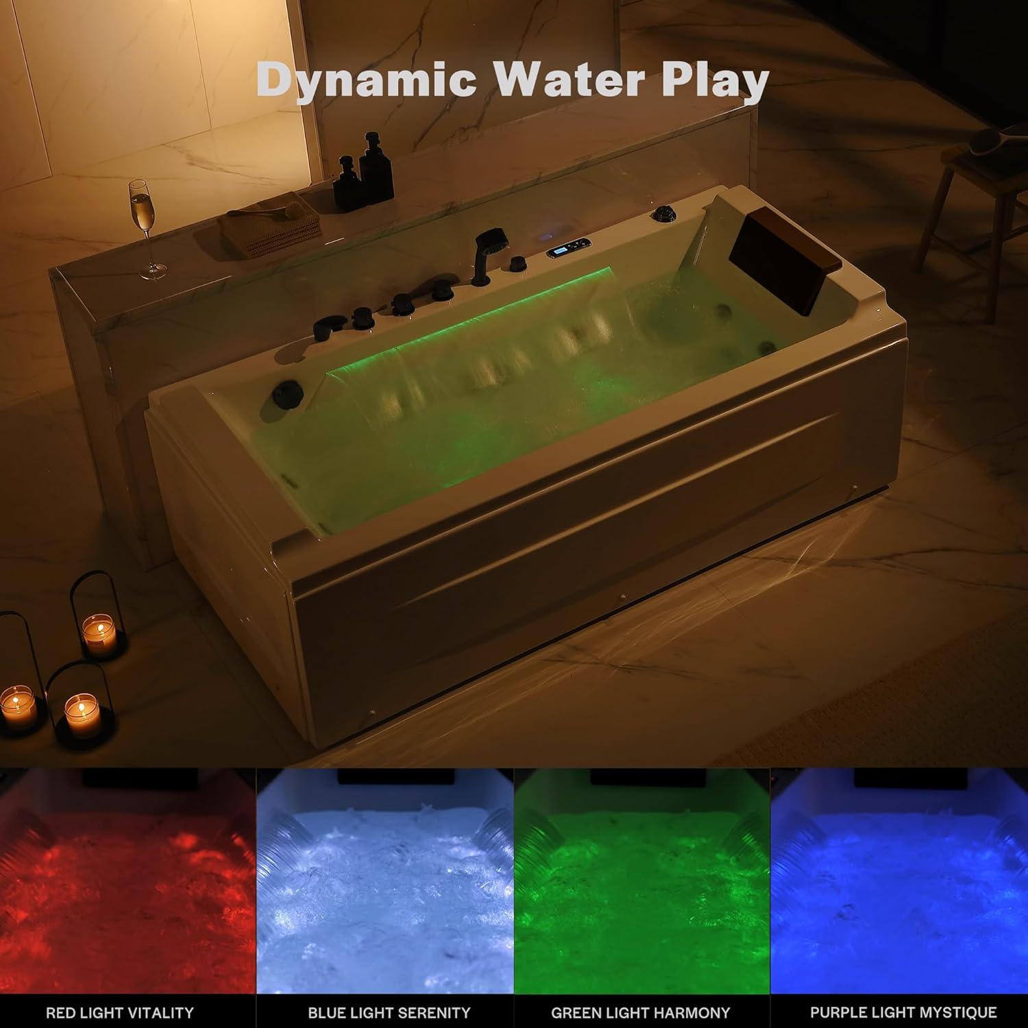 LED Chromotherapy for Mood Enhancement: Illuminate your baths with continuously changing LED lights, creating a mesmerizing ambiance that enhances mood and fosters well-being. Each color is chosen to stimulate healing, relaxation, and a sense of harmony, adding a layer of psychological comfort to your hydrotherapy sessions.