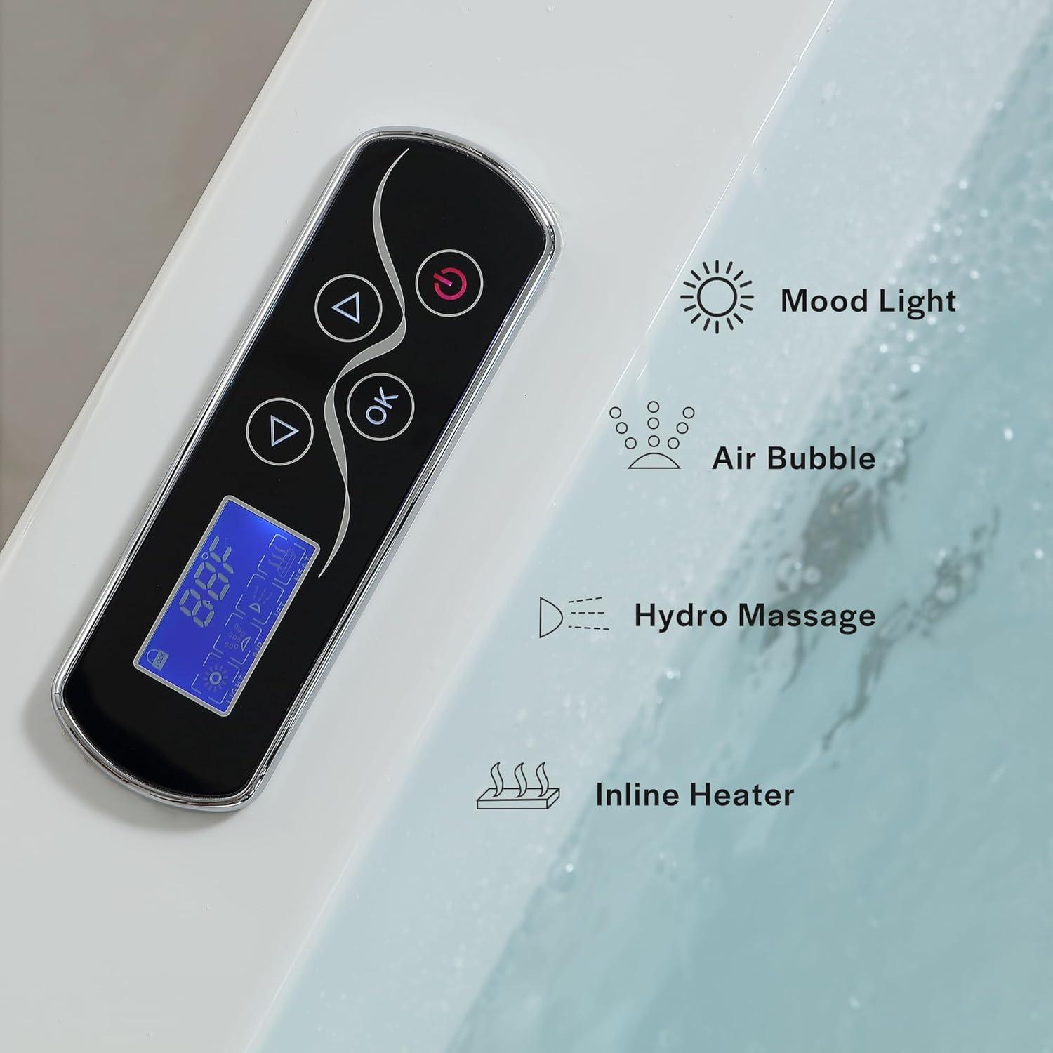 Hydro Massage Bathtub with Heater: Fitted with an inline water heater,the Empava whirlpool bathtub help keep the water warm between 96.8°F and 104°F.( Not for heating cold water.).Great tub for a longer soak without adding more hot water.
