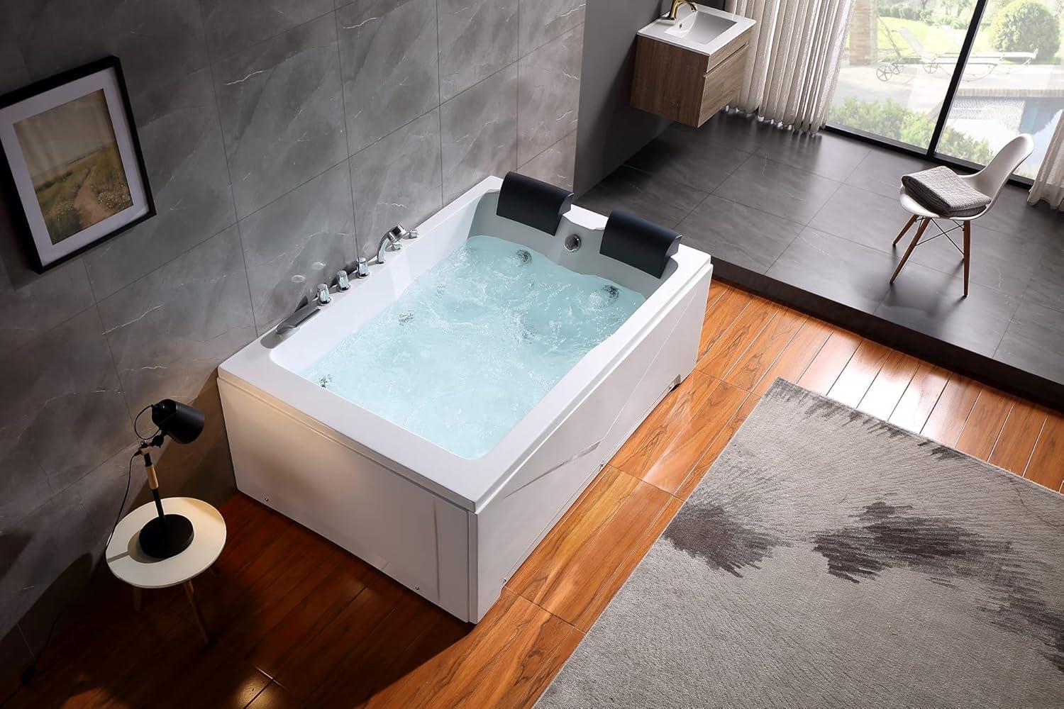 [MODERN DESIGN] The rectangular design and defined lines will complement any bathroom decor. The timeless, classic double ended design offers comfort with its lumbar arch to support your body. The Textured, slip-resistant tub floor for added safety.