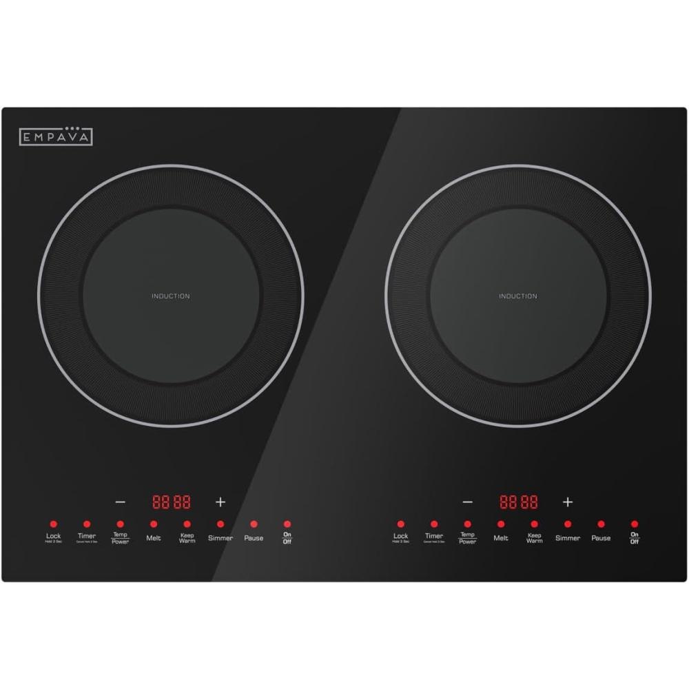imageEmpava DoubleDual Induction Cooktop 2 Burner Shatterproof Flat Glass Top 18 Levels from 120F to 460F 3 Preset Mode BulitinCountertop 110120 Volt Plug in Electric Stove for Kitchen RV20 Inch