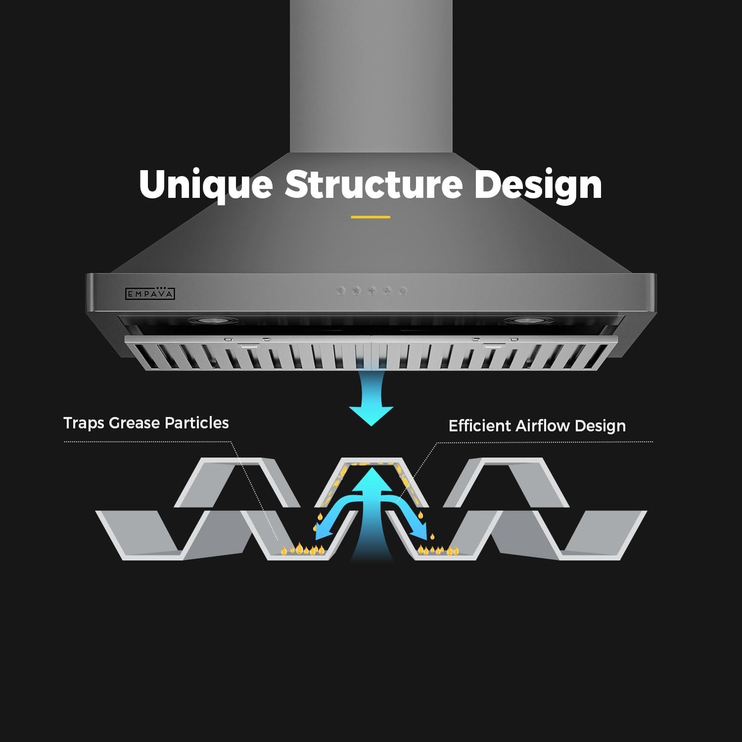 Modern Stainless Steel Finish – Crafted from high-quality stainless steel, this wall-mount range hood adds a sleek, contemporary touch to your kitchen while resisting heat, grease, and stains.