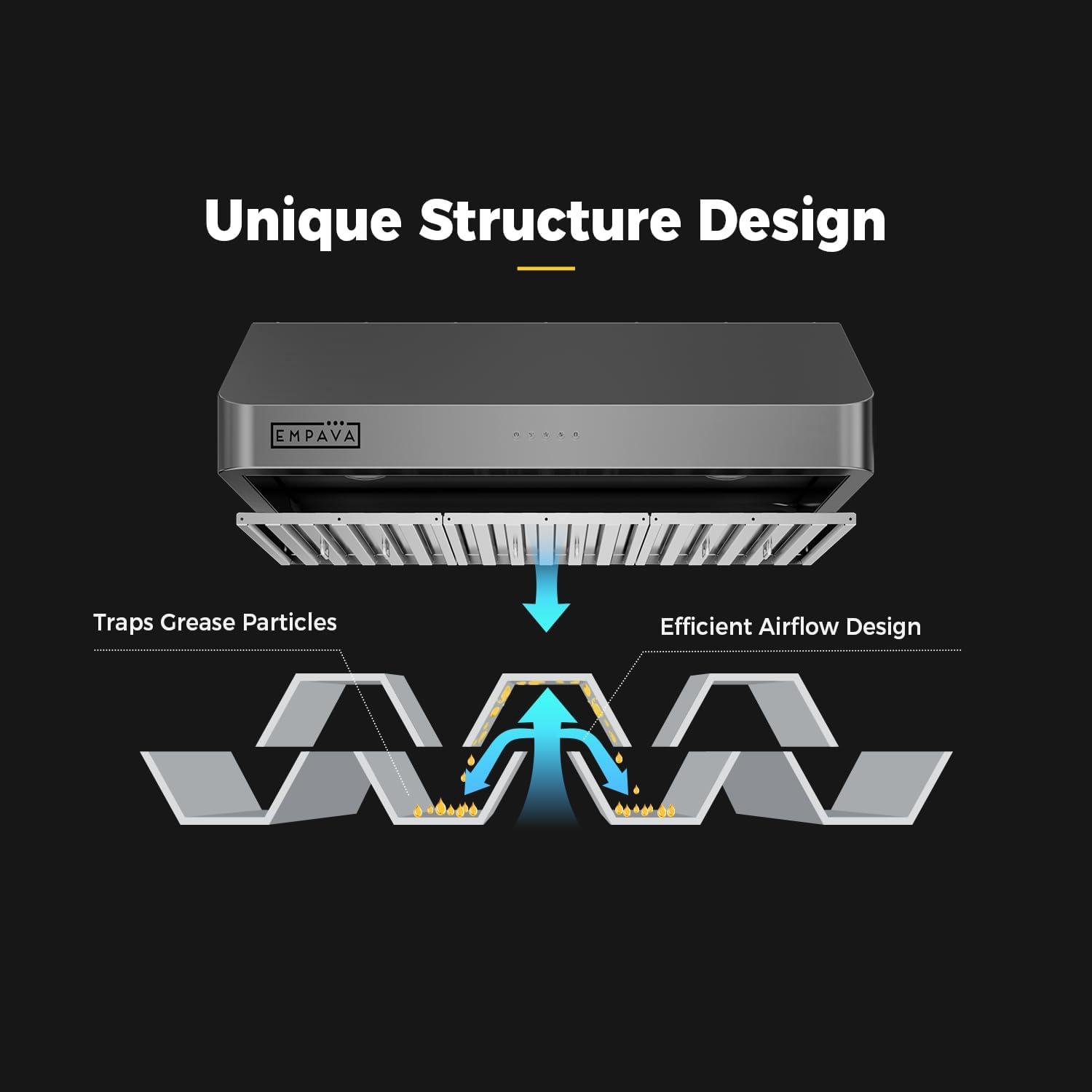 Empava Ducted Under Cabinet Stove Range Hood Vent 36 Inch, 500 CFM | Dual Sealed Aluminum Motor | Push Button Control | 3-Speeds | ETL Certification, Stainless Steel(36 Inch)