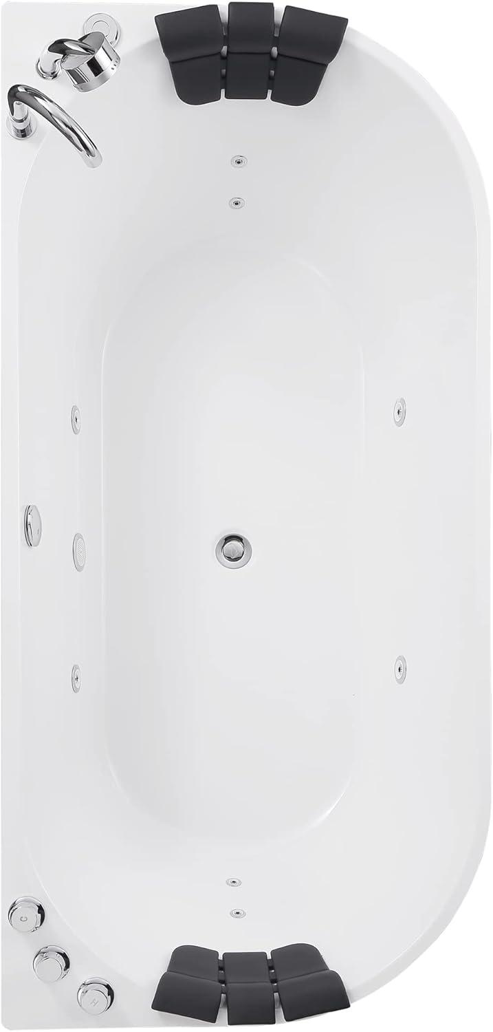 Empava Acrylic Whirlpool Bathtub, 67′ Jetted Tub with Heater, Hydro Massage & Chromatherapy, White Modern Freestanding Jetted Air Bathtub