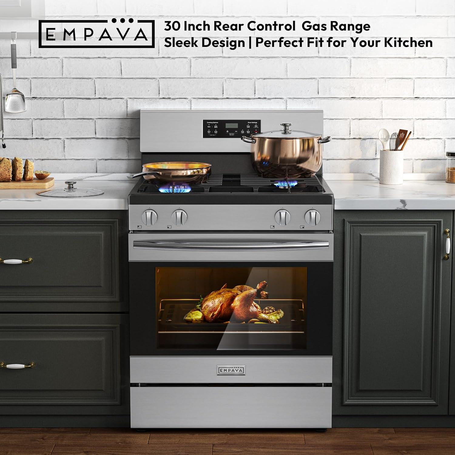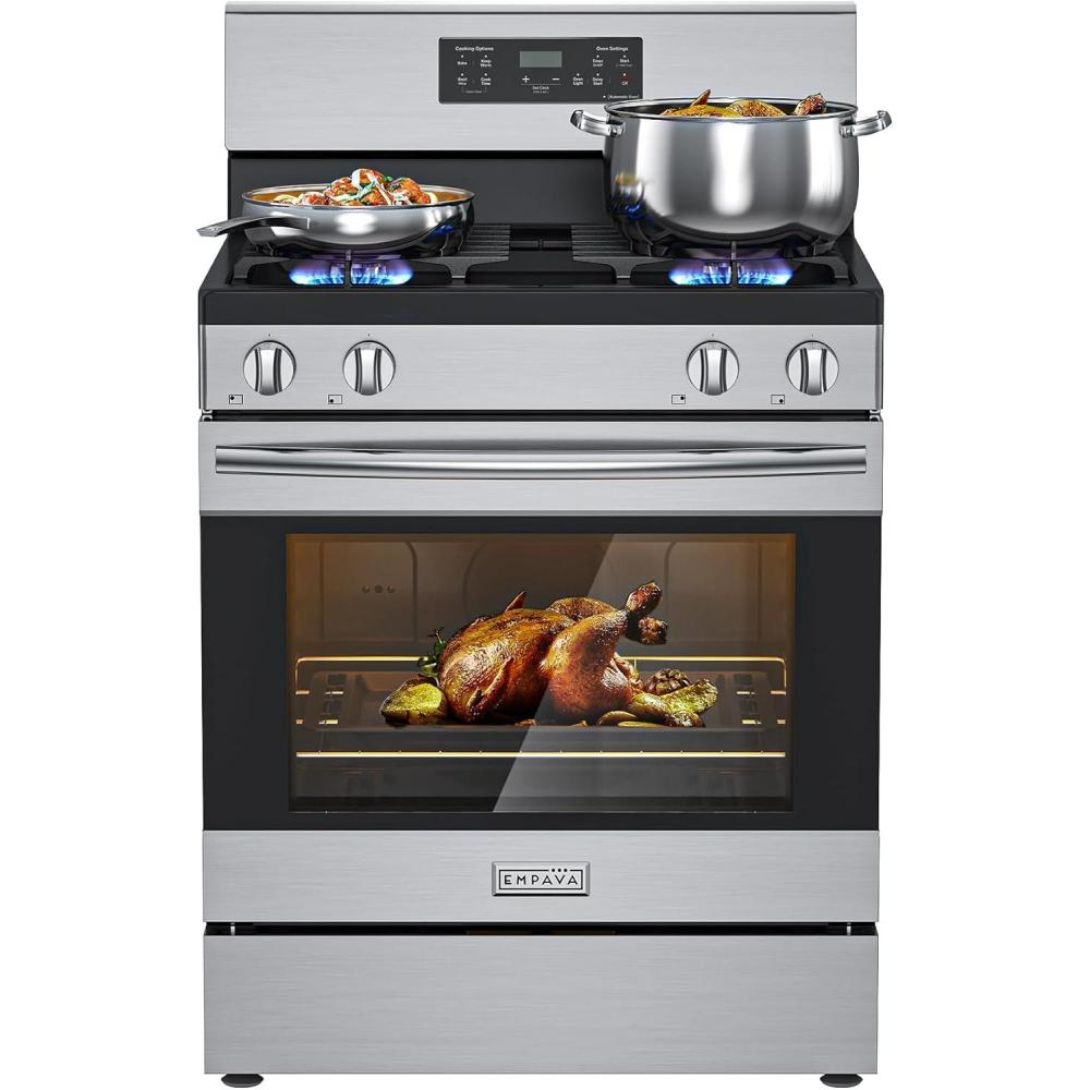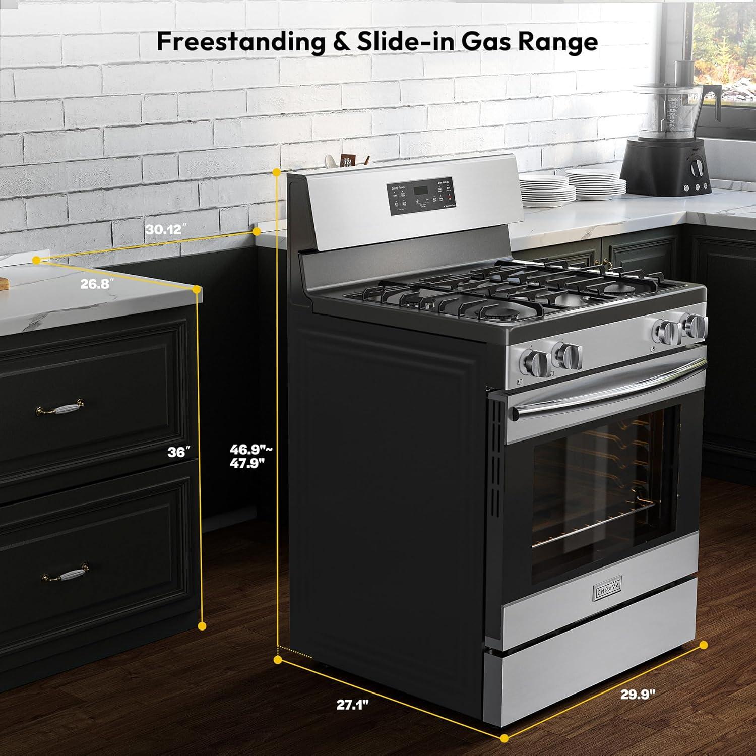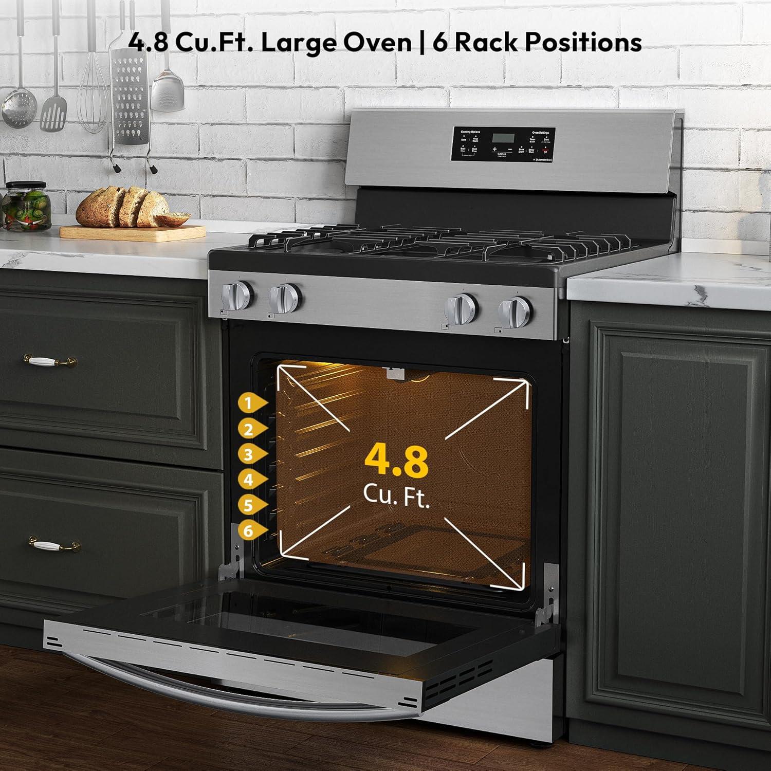 Spacious 4.8 Cu.Ft. Gas Range with Oven – This 30 inch gas range features a large-capacity oven with dual high-power burners: an 18,000 BTU bottom burner for even heat distribution in baking/roasting, and a 13,500 BTU top broil burner for perfect caramelization. Ideal for family meals and holiday cooking