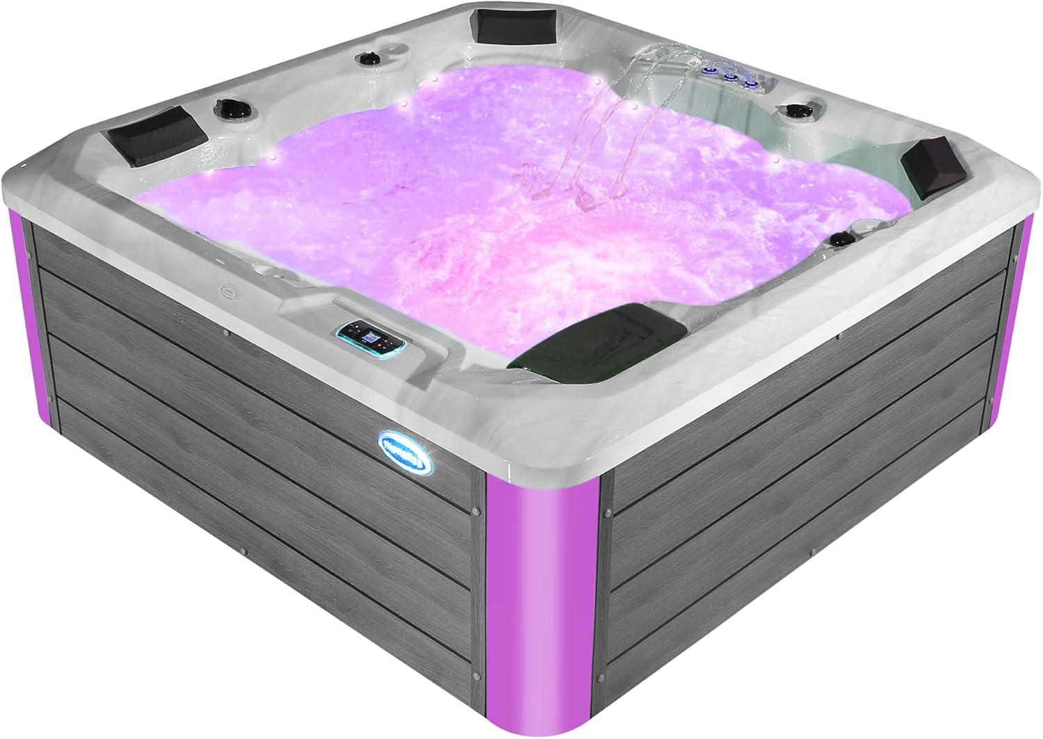 Settle into the Empava Tubs spa and experience hydrotherapeutic luxury at home. The Empava spa gives you Lucite spa luxury wrapped in a beautiful faux-wood, low-maintenance, exterior. All 37 fully-adjustable stainless-steel jets are powered by a 3.0 HP, 2-speed energy-efficient pump. Have a relaxing evening or choose a more invigorating setting and massage away the day’s aches & pains with Empava’s high-speed hydrotherapy. Empava Tub’s user-friendly, state-of-the-art command center with a digital, backlit display allows temperature, jets, lighting, and filtration customization. Experience the advantages of a larger pump and 3kW heater in the invigorating massage and performance you’ll receive during colder months. Sit back, relax and enjoy a therapeutic massage with added features including headrests, adjustable jets and LED-lighted water columns. You’ll have various seat options from which to choose… the lounger, captain's chairs, and side seats offer hydrotherapy right where you need it. Multicolor, programmable LED water columns, spa controls, and underwater lighting add ambiance to your luxury spa experience. Perimeter insulation allows your spa to retain optimum heat from your all-season, stainless-steel heater all year.