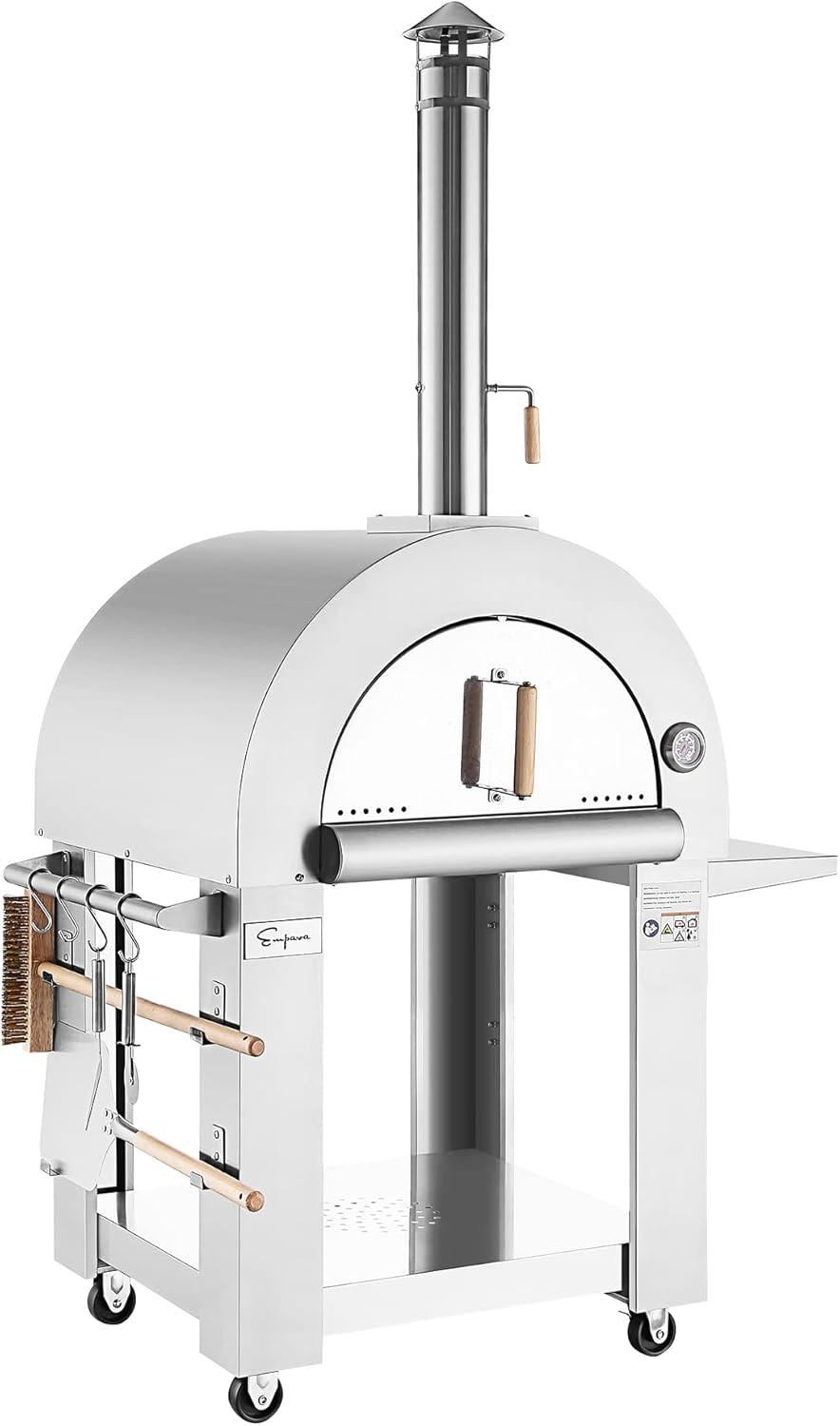 Multi-Functional: Empava 3-in-1 Pizza oven, BBQ, and smoker. Great for smoking, grilling, barbecuing, and stone bake pizza. cooking with Empava wood pizza oven means serving up fantastic dishes in your garden backyard, at the beach, or any outdoor space