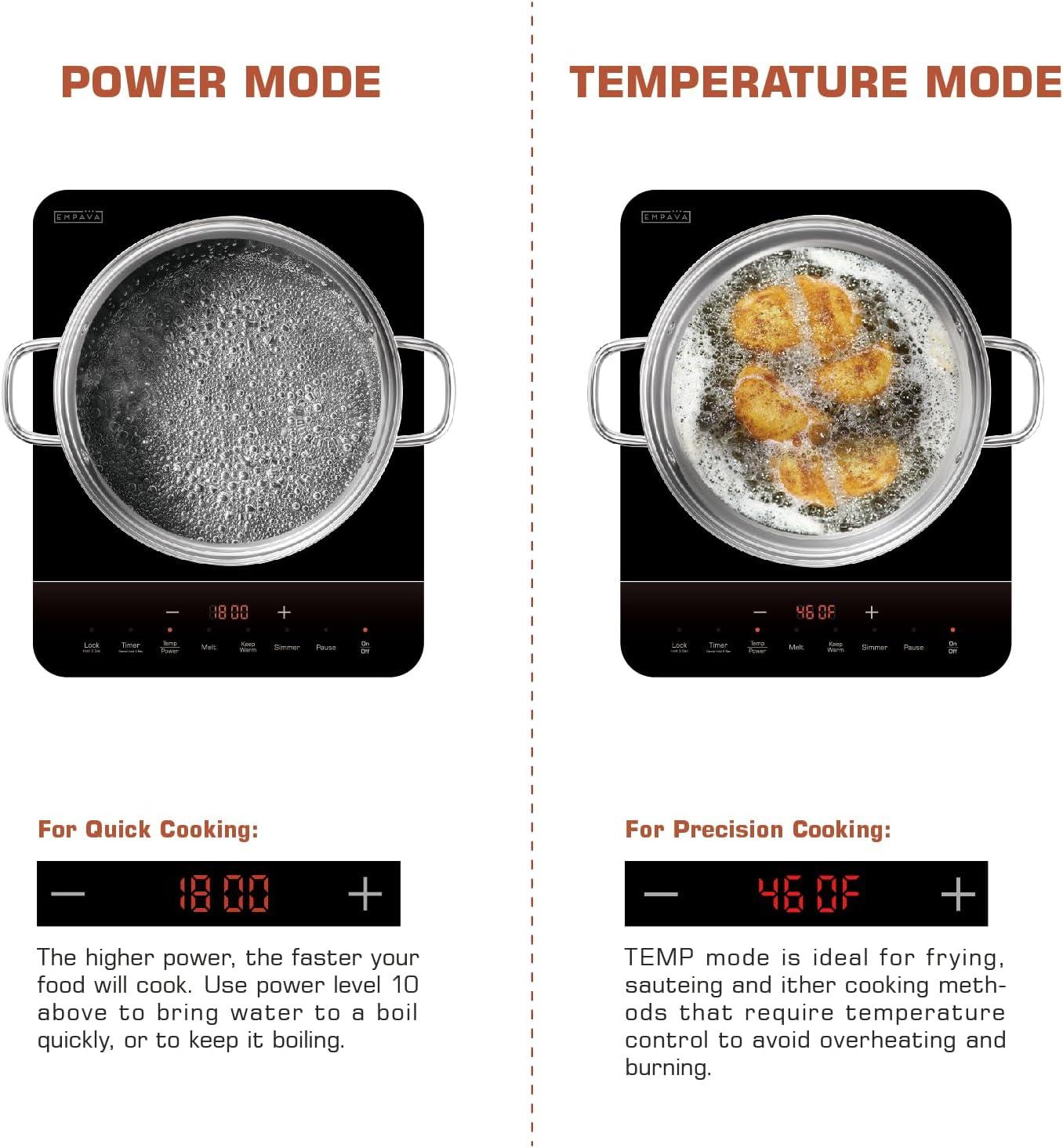 【Precision Cooking Redefined】: Experience unparalleled control with this induction cooktop's digital interface. Whether you need a gentle simmer or a rapid boil, adjust temperatures between 120°F to 460°F with precision in 20°F increments. The 'Melt', 'Keep Warm', and 'Simmer' settings offer specialized heat options without the need to restart if adjustments are necessary. Tailor your cooking time on the go for perfect results every time.