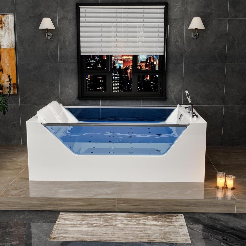 Empava PRO Series 71″x48″ Whirlpool Tub | Heated Bubble Spa for 2 with Thermostatic Control & Chromotherapy | Acrylic Freestanding Soaking Bathtub, White (ETL Certified)(PRO02)