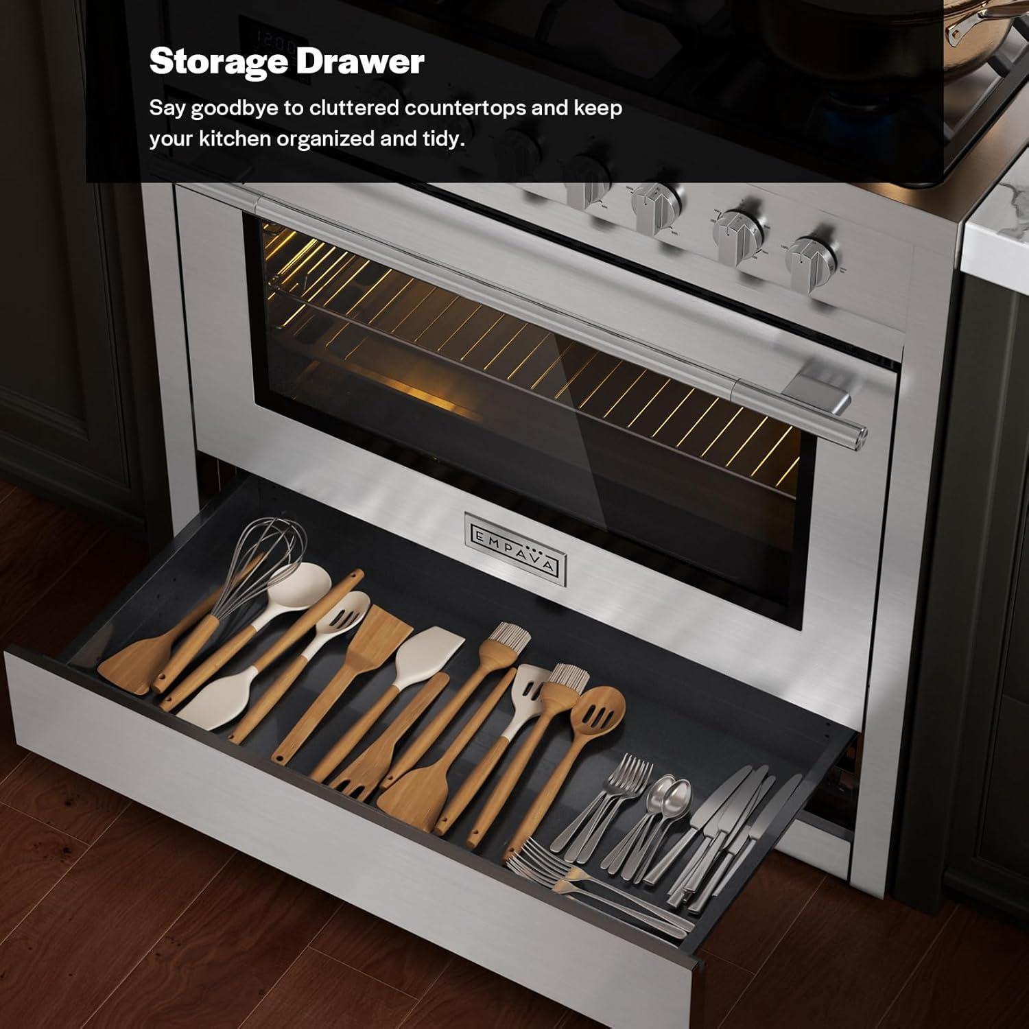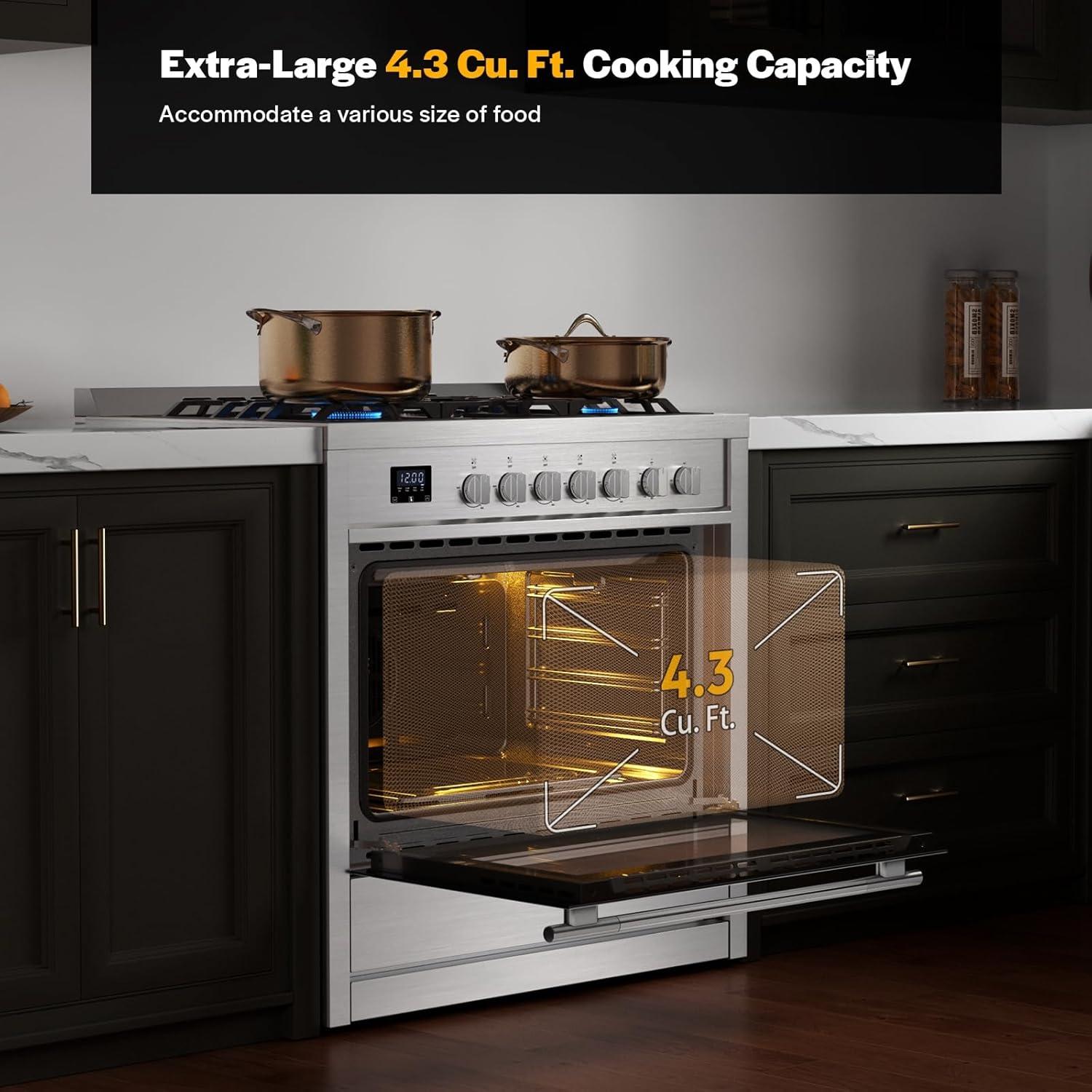 Massive Capacity for Entertaining: This 30 inch gas range's huge oven fits multiple dishes easily (6 adjustable racks) + includes a handy storage drawer. A true family-sized kitchen gas stove