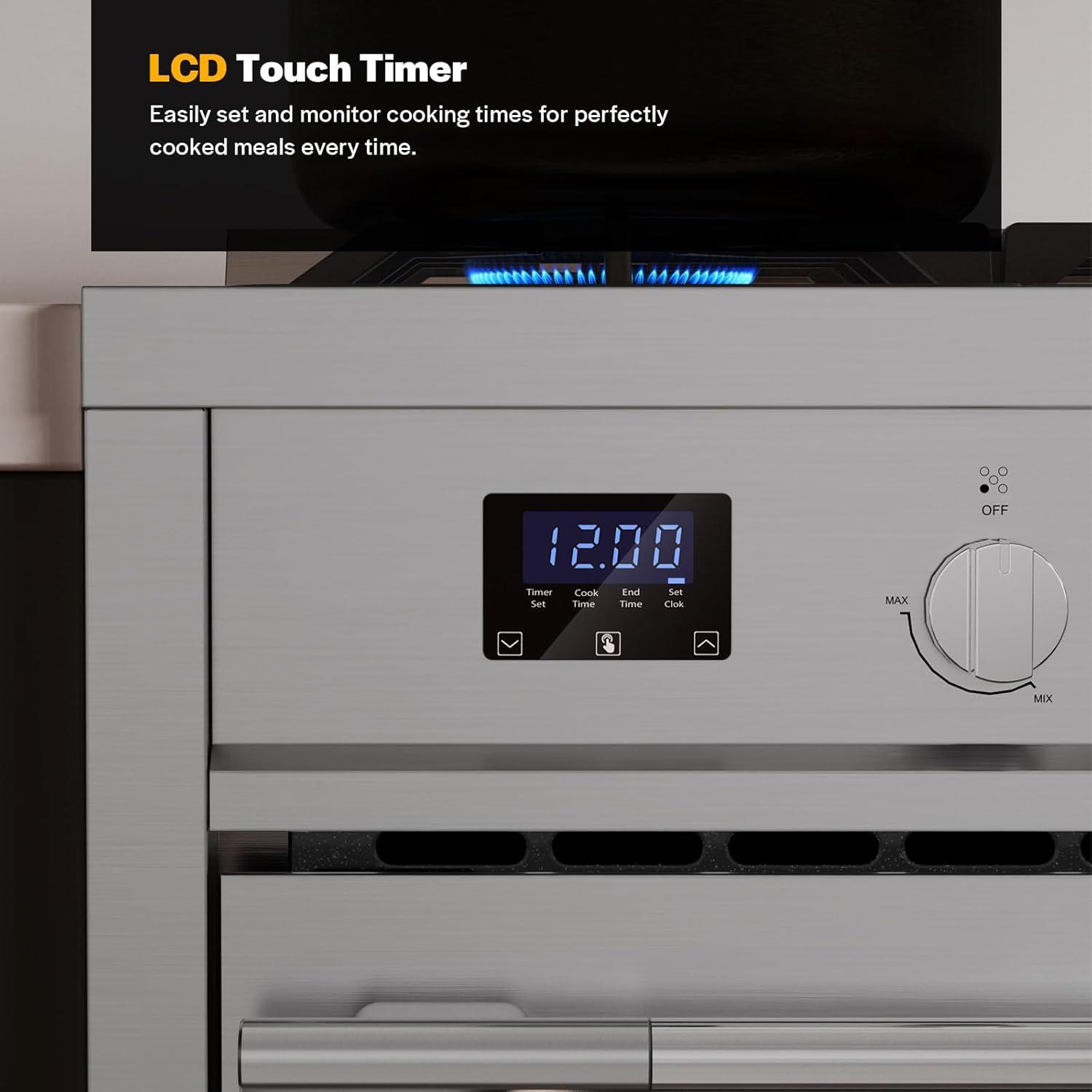 Restaurant Power in Your Kitchen: Master any recipe on this gas range! Features a blazing 18,000 BTU Power Burner (perfect searing!) + versatile 5-sealed burner gas cooktop (incl. 9K BTU oval), all with flame-failure safety. Ideal gas stove for kitchen demanding performance