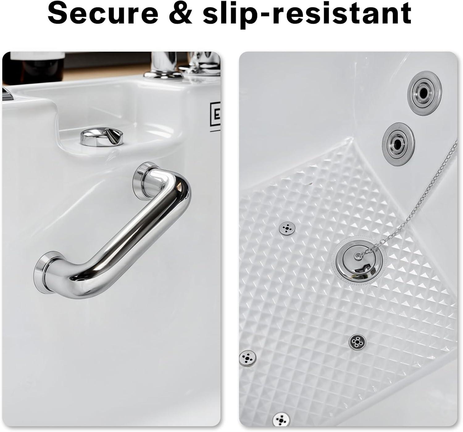 Walk-In Tub with Spa-Inspired Hydrotherapy: 13 whirlpool jets and 12 air jets create a serene relaxation oasis. Transform your bathroom into a personal retreat with this walk in tub, blending luxury and accessibility for seniors