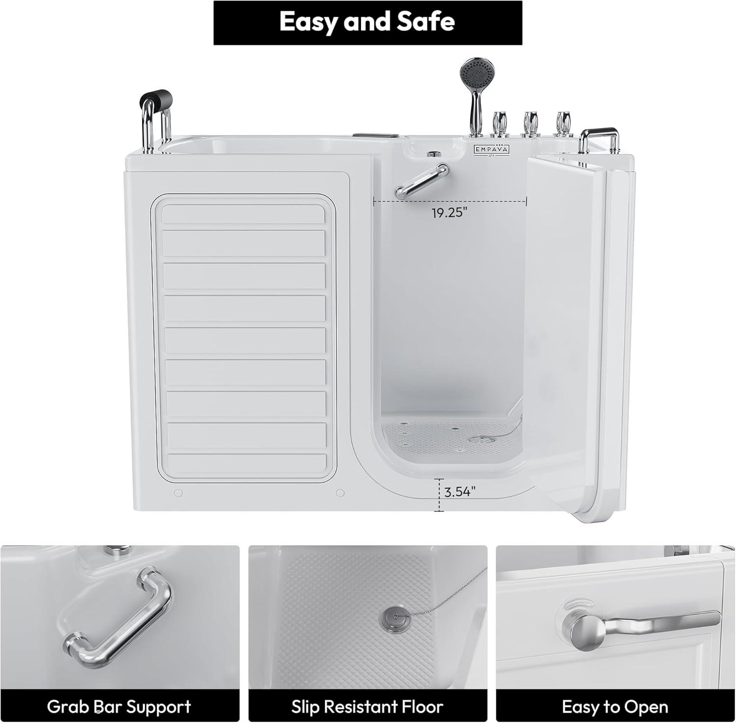 Dual Safety Grab Bars: Equipped with two strategically placed grab bars, this walk in bathtub ensures additional support for users when entering, exiting, or standing up from the seat. These bars are designed to help prevent falls and provide peace of mind to users and caregivers alike.