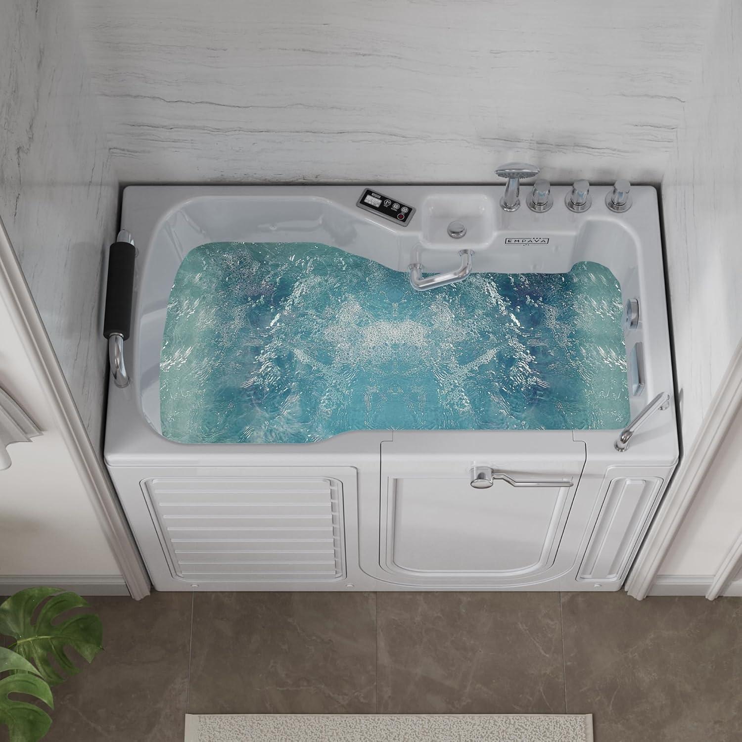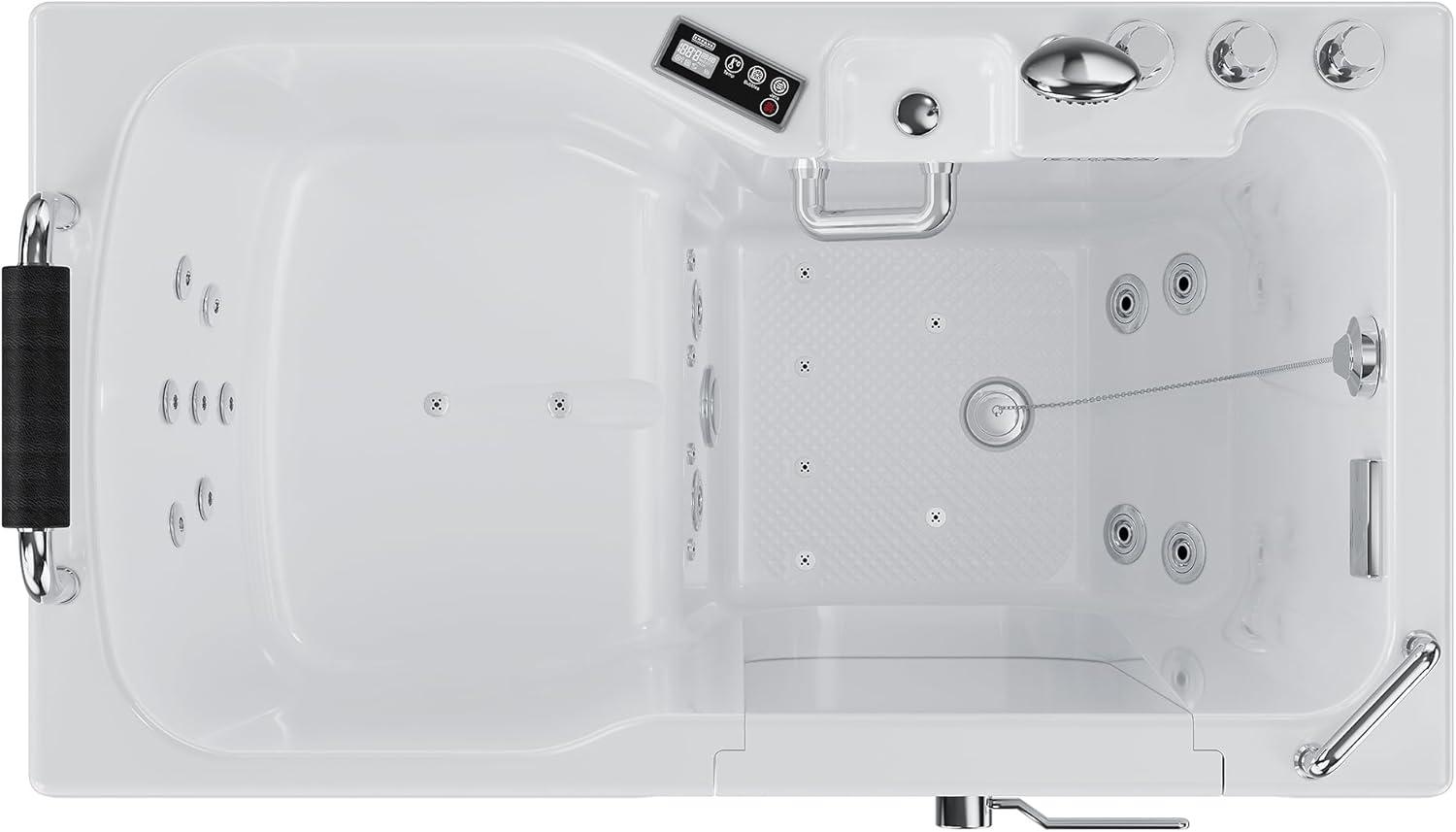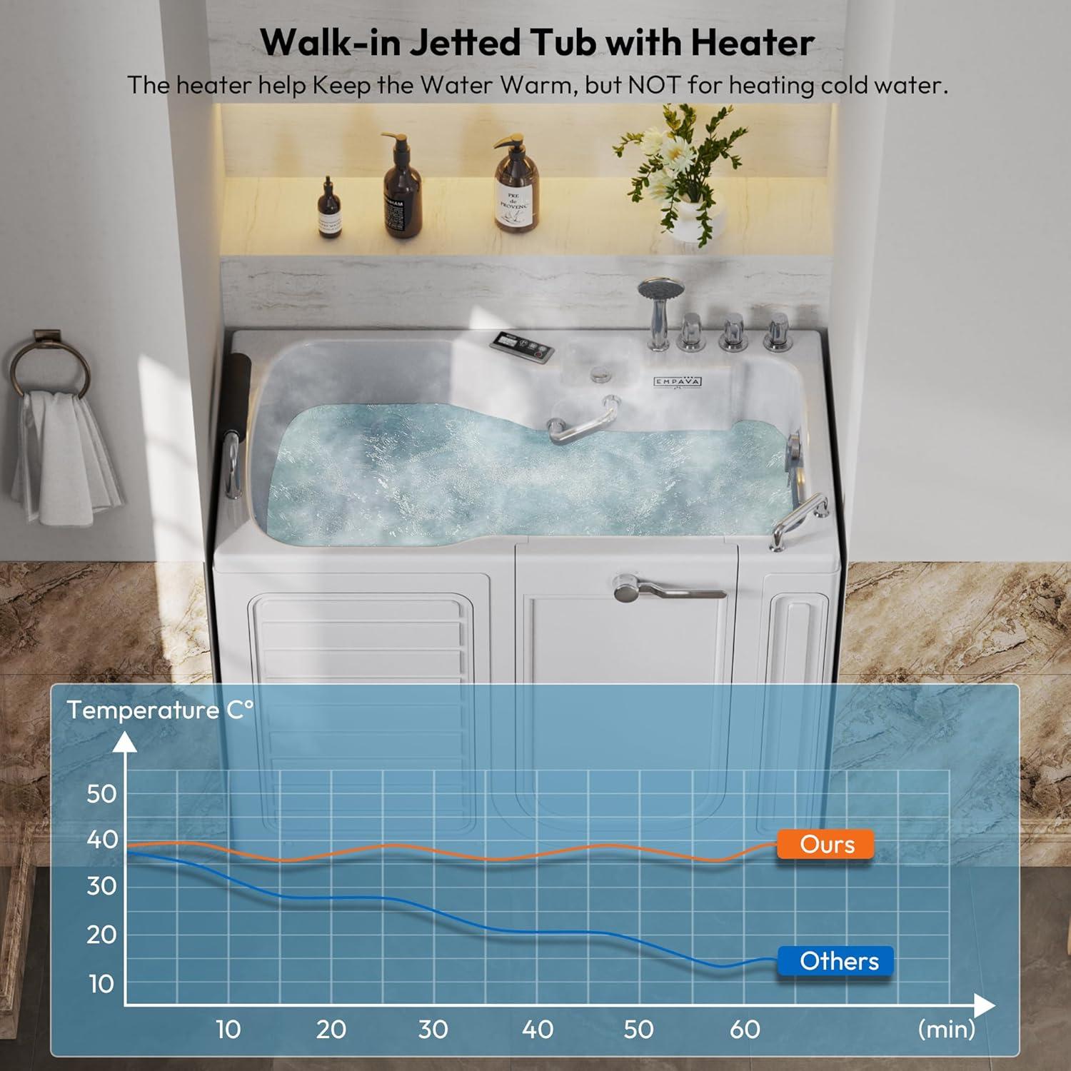 Consistent Warmth in Your Tub: With a built-in heater, the walk-in whirlpool tub maintains water temperature between 77°F and 104°F (not for heating cold water). Perfect for relaxing after a long day, it ensures a consistently warm and comfortable bath.
