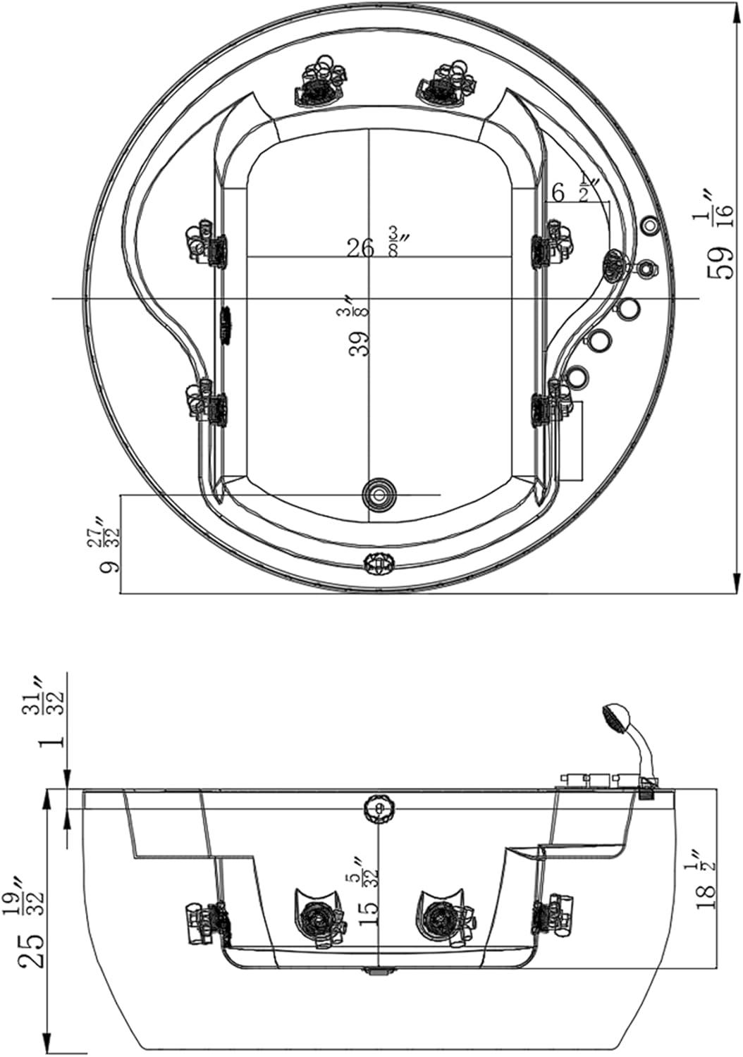 Outer Dimensions: 59 in. W x 59 in. D x 25.59 in. H, 100 gallons of water capacity, UL Certified Motor. Pre-installed US standard 120V Power Cord, 7 amps breaker required. With 3 years limited manufacture warranty.