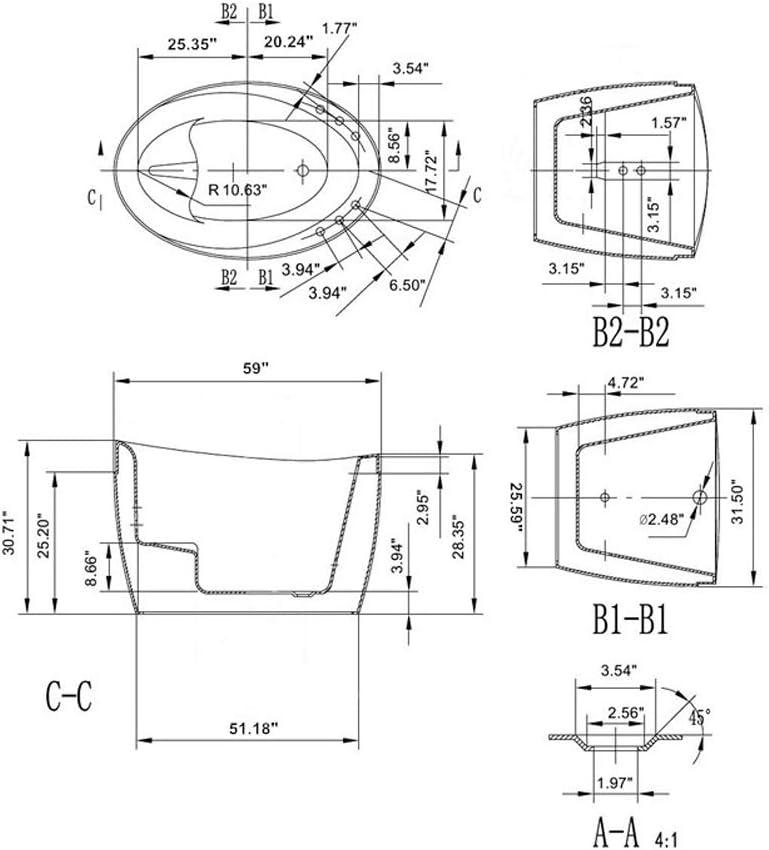 The acrylic air jets tub constructed of 100% heavy gauge sanitary grade precision acrylic, reinforced with fiberglass and supported with a stainless-steel frame makes the bearing capacity is up to 440 LBS. The Textured, slip-resistant tub floor for added safety.