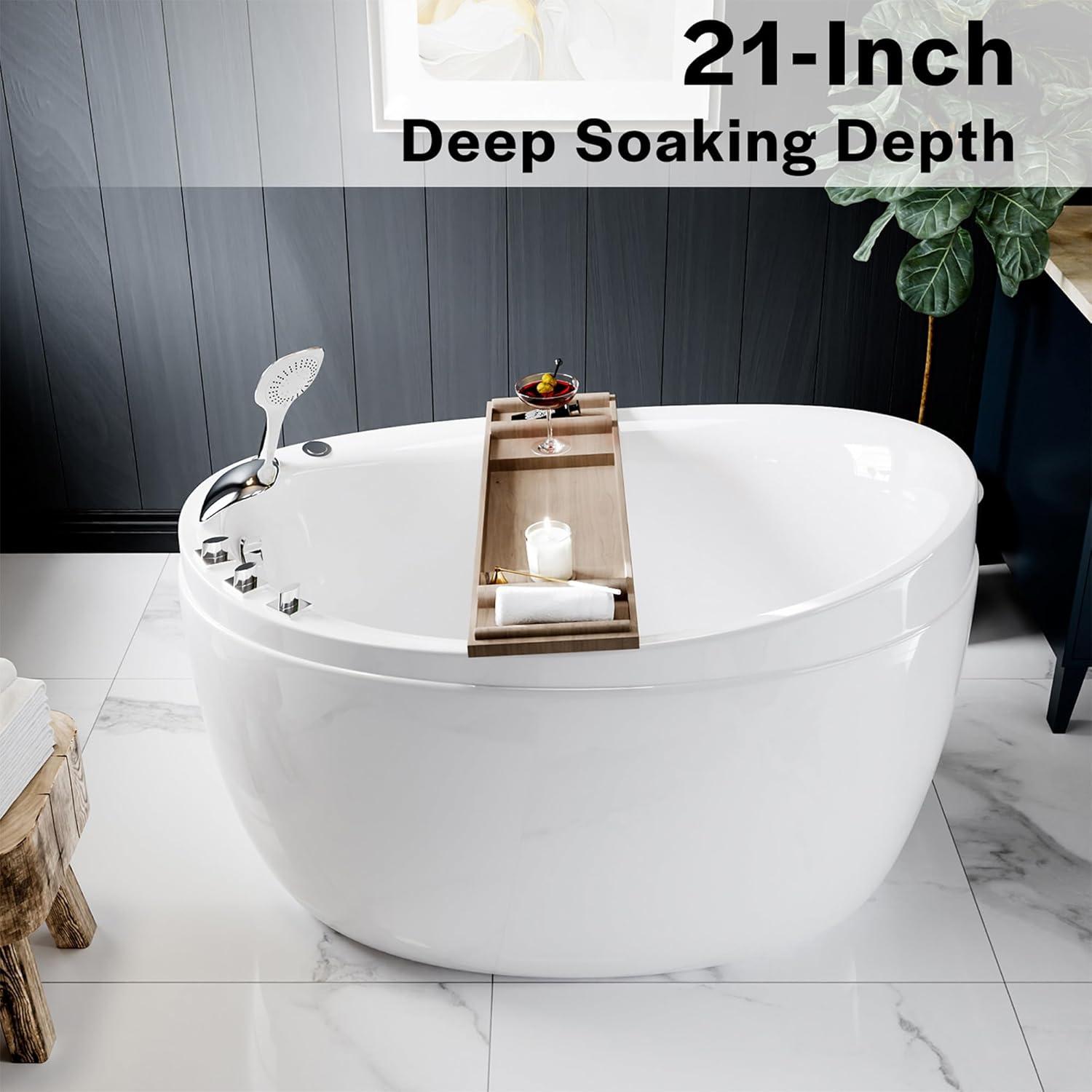 Comfortable Deep Soaking Bath: Designed with a 21-inch soaking depth and an integrated seat, this bathtub lets you submerge up to your shoulders, creating a relaxing experience. Quick-fill and efficient draining enhance your bathing convenience