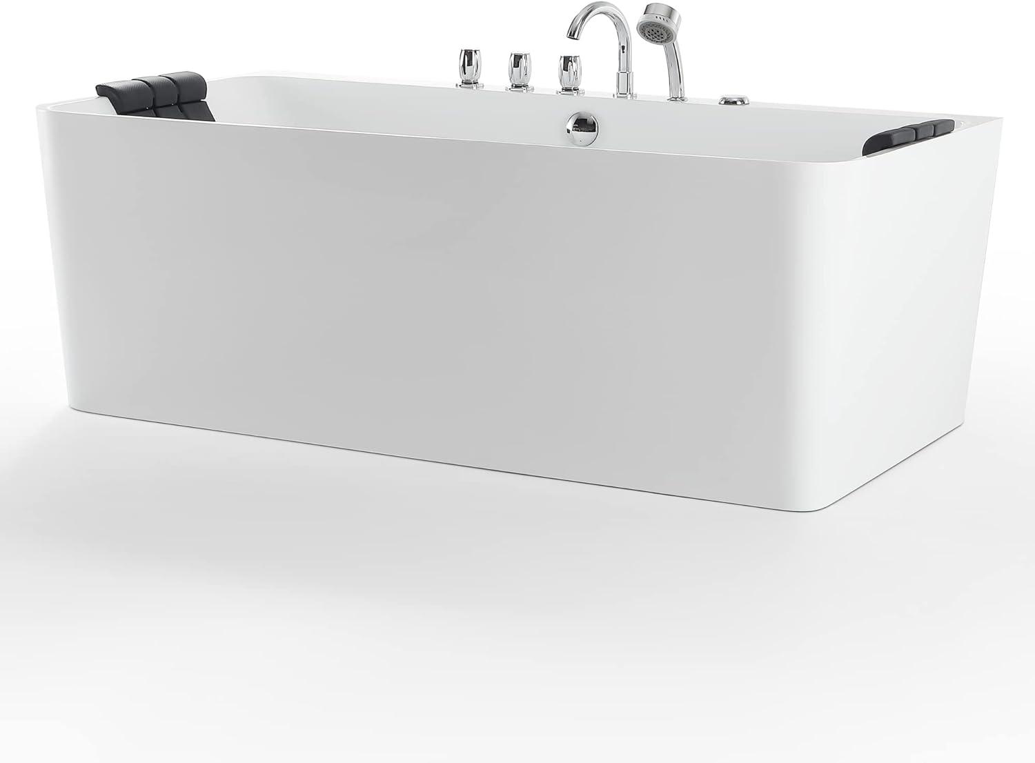 [PREMIUM QUALITY] The acrylic whirlpool tub features acrylic reinforced with fiberglass for long-lasting durability and a contemporary stand-alone design that complements any bathroom décor.Environmentally friendly material, non-toxic, non-cracking, high gloss, and durable finish. Easy to clean, and resistant to a wide range of household chemicals and cosmetic products.